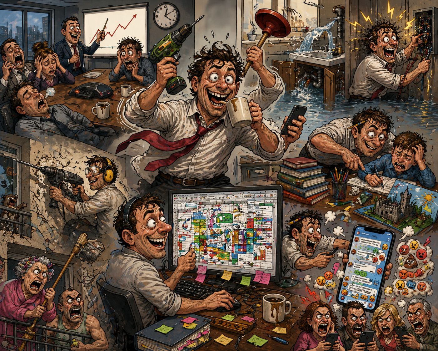 După el rămân robinete stricate, fișiere blocate, relații rupte, copii stresați, dimineți distruse, tabele inutile, ședințe moarte, grupuri isterice și nervi pe care nu-i mai scoți niciodată complet, iar răspunsul la întrebarea „cum s-a ajuns aici?” e aproape mereu același: s-a ocupat prostul harnic.